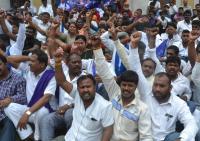 Members of Pragathipara Chialuvaligarara Samithi staged a protest to fulfill their various demands at Town Hall, in Bengaluru on Monday 11th July 2016