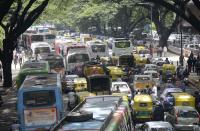 Traffic jam reported at KG Road due various organizations protests at SBM Circle, in Bengaluru on Thursday 28th July 2016