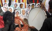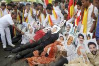 Members of Veera Kannadigara Sene burning the effigies of Karnataka All Party MPs during their protesting against verdict on Mahadayi water project at SBM Circle, in Bengaluru on Friday 29th July 2016