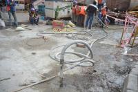 | Event Details: | BMRCL workers seen filling concrete inside the caved in sinkhole at KG road, which was wide open yesterday , in Bengaluru on Wednesday 3rd August 2016 |