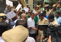 | Event Details: | Karnataka State farmers association and Hasiru Sene members were arrested near Freedom park, who were on their way to the house of Home Minister Dr G Parameshwar at Sadashivanagar to protest against the recent lathi charge on farmers and demanded to release the arrested farmers immediately, in Bengaluru on Saturday 6th August 2016 |