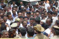 BBMP Contactors seen with BBMP Mayor Manjunath Reddy at BBMP Head Office, during their protest to clear their bills, in Bengaluru on Monday 8th August 2016
