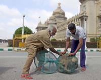 Stray dogs being caught by the BBMP officials at Vidhan Soudha, in Bengaluru on Saturday 13th August 2016