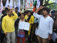 Members of Students Federation of India (SFI) staged a protest against the ABVP for the Amnesty International India issue at SBM Circle, in Bengaluru on Thursday 18th August 2016