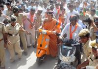 | Event Details: | Union Minister Smriti Irani is seen with MP PC Mohan at the public meeting, as part of the Tiranga Yatra at Vidurashwatha, Gowribidanur, on Tuesday 23rd August 2016 |