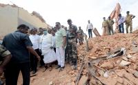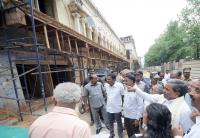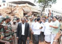 CM Siddaramaiah seen inspecting the collapsed Northern Gate of Devaraja Market building along with Minister Tanveey Sait and other officials, in Mysuru on Tuesday 30th August 2016