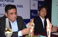 Dr Chandrashekar P and Takashi Maki of SAKRA addressing a press conference about first computer assisted partial knee replacement surgery southern India at a hotel, in Bengaluru on Wednesday 31st August 2016