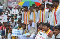Members of Namma Chalakara Sangha led by Freedom Fighter Doreswamy protesting to fulfill their demands at Town Hall, in Bengaluru on Thursday 1st September 2016