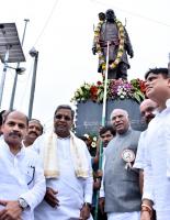 CM Siddaramaiah with Mallikarjuna Kharge and others tribute to Sardar Vallabhai Patel statue and inaugurated various development projects during his visit to Kalaburagi on Saturday 17th September 2016