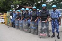 RAF and Police personnel tight security at CM Home office and Residence, in Bengaluru on Wednesday 21st September 2016