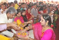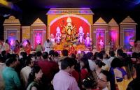 Devotees partake in Durga pooja on the occasion of Navaratri utsava at RBANMS Grounds, in Bengaluru on Sunday 9th October 2016