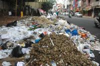 Garbage and festival waste has accumulated on Dickenson Road near Commercial Street, in Bengaluru on Tuesday 11th October 2016