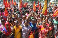Members of Karnataka State Anganwadi workers participated in protest rally from City Railway Station to Freedom Park to fulfill their various demands, in Bengaluru on Monday 17th October 2016