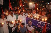 RSS workers candle vigil in memory of Rudresh, who was murdered recently at Sheshadripuram, in Bengaluru on Thursday 20th October 2016