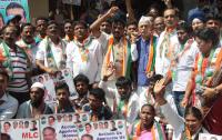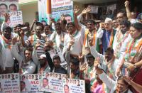 Supporters of Congress Leader Prakasham protesting and demanding MLC post for Prakasham at KPCC office, in Bengaluru on Thursday 3rd November 2016