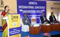 | Event Details: | Dr Shalini Rajaneesh, Principal Secretary, Ministry of Health and Family welfare addressing during international conference on "Engendering Health" at a Hotel, also seen are, Dr SD Gupta, Trustee Secretary and Chairman, IIHMR, Prof Arnab L Laha, Chairman, CHMS, IIM and Dr Biranchi N Jena, Director, IIHMR, in Bengaluru on Friday 18th November 2016 |