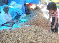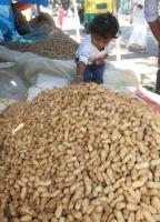 A baby seen playing with ground nuts during the preparation for the upcoming Ground Nut festival (Kadalekai Parse) at Basavanagudi, in Bengaluru on Monday 21st November 2016