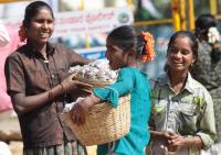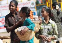 Young girls seen selling Groundnuts and usually do good business during various protests at Freedom Park, in Bengaluru on Monday 19th December 2016