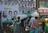 | Event Details: | Jobless labourers seen with their belongings in search for new jobs, walk past a huge cut out of politicians, as most of the labours are jobless due to demonetisation, in Bengaluru on Monday 19th December 2016 |