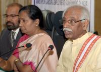 | Event Details: | Bandaru Dattatreya, Union Minister of Labour and Employment with Sthyavathi, Vice Chairperson for Employees Provident Fund Organisation and others seen addressing a press conference after the Employees Provident Fund Organisation board meeting at ITC Gardenia, in Bengaluru on Monday 19th December 2016 |