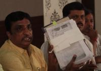 BJP Councilor NR Ramesh addressing press conference on land grabbing at VT Paradise Hotel, in Bengaluru on Thursday 22nd December 2016