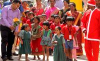 CRISP NGO (Children Rights Initiative for Shared Parenting) and Shanthiniketan School distributed cakes and gifts to Chamundeshwari Slum children on the eve of Christmas at Girinagar, in Bengaluru on Friday 23rd December 2016