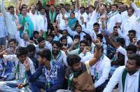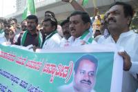 Members of JDS youth wing protest against the Central and State government for not allowing the students to write Medical entrance exams in Kannada at Gandhi Statue, in Bengaluru on Saturday 24th December 2016