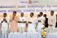 Chief Minister Siddaramaiah with Ministers Dr HC Mahadevappa, HS Mahadevaprasad and Tanveer Sait inaugurated development works at Nanjangud near Mysuru on Thursday 29th December 2016