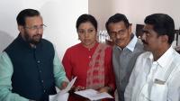 | Event Details: | MLC Tara Anuradha submitting the memorandum to Union Minister for HRD, Prakash Javedekar, urging the ministry to refresh syllabus and the text books published by NCERT and DSERT for the academic year 2017and 2018, also seen MLC Arun Shapur, Ex MLC Balakrishna, in Bengaluru on Thursday 12th January 2017 |