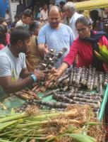 People throng to Malleswaram market to purchase Sankranti Festival items, in Bengaluru on Friday 13th January 2017