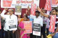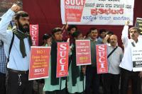 Members of SUCI staged a protest and demanded for issuing the ration cards to poor people at SBM Circle, in Bengaluru on Tuesday 17th January 2017