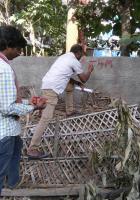 BBMP officials engage workers to do the markings to mark the encroachments in the premises of private apartment complex White House in Dinnur Main Road at RT Nagar, in Bengaluru on Thursday 19th January 2017