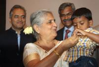 | Event Details: | Sudha Murthy, Chairperson Infosys Foundation with Dr Devi Shetty, Chairman Narayana Health seen cutting a cake with the patients on the occasion of Narayana Health completing 100 successful robotic surgeries during a press conference at ITC Gardenia , in Bengaluru on Tuesday 24th January 2017 |
