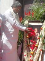 Chief Minister Siddaramaiah floral homage to the portrait of Mahatma Gandhi to mark the Sarvodaya Day celebrations at Vidhan Soudha, in Bengaluru on Monday 30th January 2017