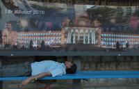 | Event Details: | A man in his wildest of dreams seen sleeping below a huge cut out of Vidhan Soudha, put up at a bus stop at Race Course Road, in Bengaluru on Friday 3rd February 2017 |