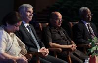 Dr K Kasturirangan with Dr David Bergvinson and Dr Uma Lele and others seen at the Valedictory program of the 8th Agricultural Science Congress at GKVK, in Bengaluru on Thursday 23rd February 2017