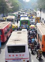 Heavy traffic jam on Sheshadri Road, in Bengaluru on Monday 27th February 2017
