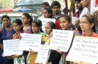 SFI students protesting at SBM Circle to fulfill their various demands, in Bengaluru on Monday 13th March 2017