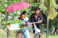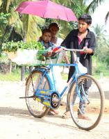Brother and Sister selling vegetables with their younger brother to earn their daily bread on Mysuru Road, in Bengaluru on Sunday 26th March 2017