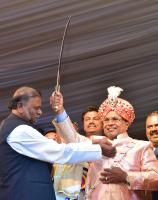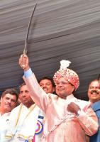 CM Siddaramaiah being felicitated by Minister Anjaneya during Felicitation to CM programme organized by Federation of Dalit Organizations at Palace Grounds, in Bengaluru on Sunday 26th March 2017