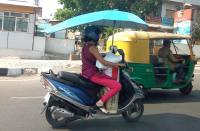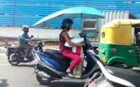 | Event Details: | A women riding a two wheeler with an umbrella to protect from the scorching sun, as the temperatures in Bengaluru City have been souring high, in Bengaluru on Tuesday 28th March 2017 |