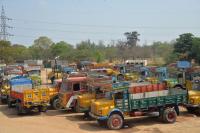 Lorries and trucks seen parked at a market in Mysuru, following lorry strike continues, on Tuesday 4th April 2017