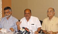 S Guruswamy, President, Wine board addressing press conference with TM Mehar Vade and Ramesh Shalgar at Century Club, in Bengaluru on Friday 7th April 2017