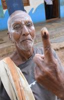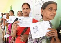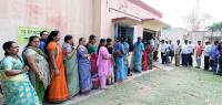 People cast their votes under tight security during Nanjangud By Election in Nanjangud on Sunday 9th April 2017