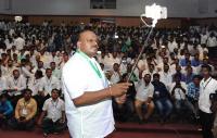 | Event Details: | HD Kumarswamy, Former CM and JDS leader seen taking a selfie during the “Kumara Patha” (way), Social Media workers discussion program at Jnana Jyothi Auditorium, in Bengaluru on Saturday 15th April 2017 |