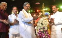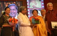 CM Siddaramaiah with Minister KJ George presented the Annual Film Awards 2016 during a program at Ambedkar Bhavan, in Bengaluru on Monday 24th April 2017