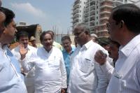 KJ George Minister for BD and TP with officials inspecting the Hennur Flyover Work progress, in Bengaluru on Friday 5th May 2017
