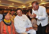 Legendary Singer Dr SP Balasubrahmanyam felicitating Padma Shree Sukri Bomma Gowda during the launch of IYDANI a redefine folk tradition of India, in Bengaluru on Saturday 27th May 2017