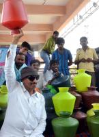 Members of Kannada Chaluvali Vatal Paksha and its President Vatal Nagaraj protest for drinking water at Majestic, in Bengaluru on Sunday 28th May 2017