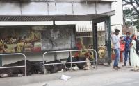 Cattle have taken over the bus shelter and the people have been forced to stand outside the shelter in hot sun at Good Shed Road, in Bengaluru on Sunday 4th June 2017